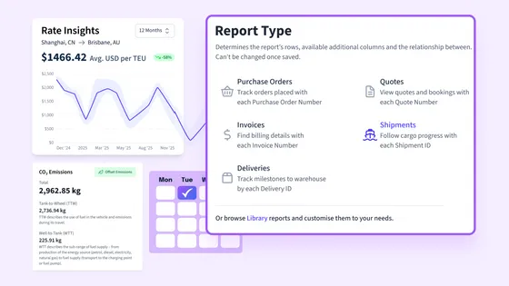 Build reports and dashboards comparing rates across the market to ensure you're not paying too much. Add charges to shipments, link them back to POs and calculate how freight spend is influencing landed costs.