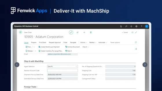 Fenwick Apps’ team worked closely with MachShip to bring their functionality to Dynamics 365 Business Central. Before creating the integration, MachShip customers using the platform needed costly, one-off custom integrations. Each project required significant development effort, technical expertise, and API work, so the challenge was to deliver a repeatable, plug-and-play solution. Customers wanted something they could download from Microsoft AppSource and start using without long projects, high costs, or complex resourcing.